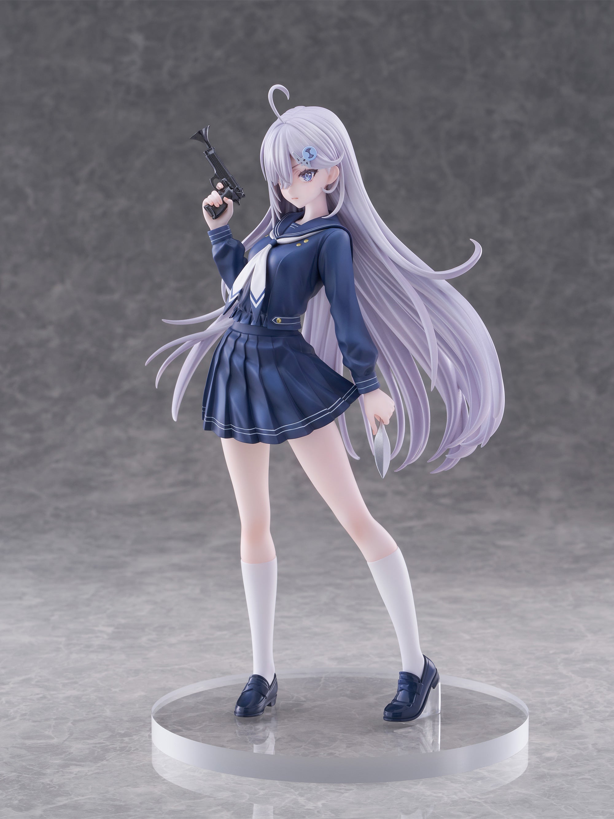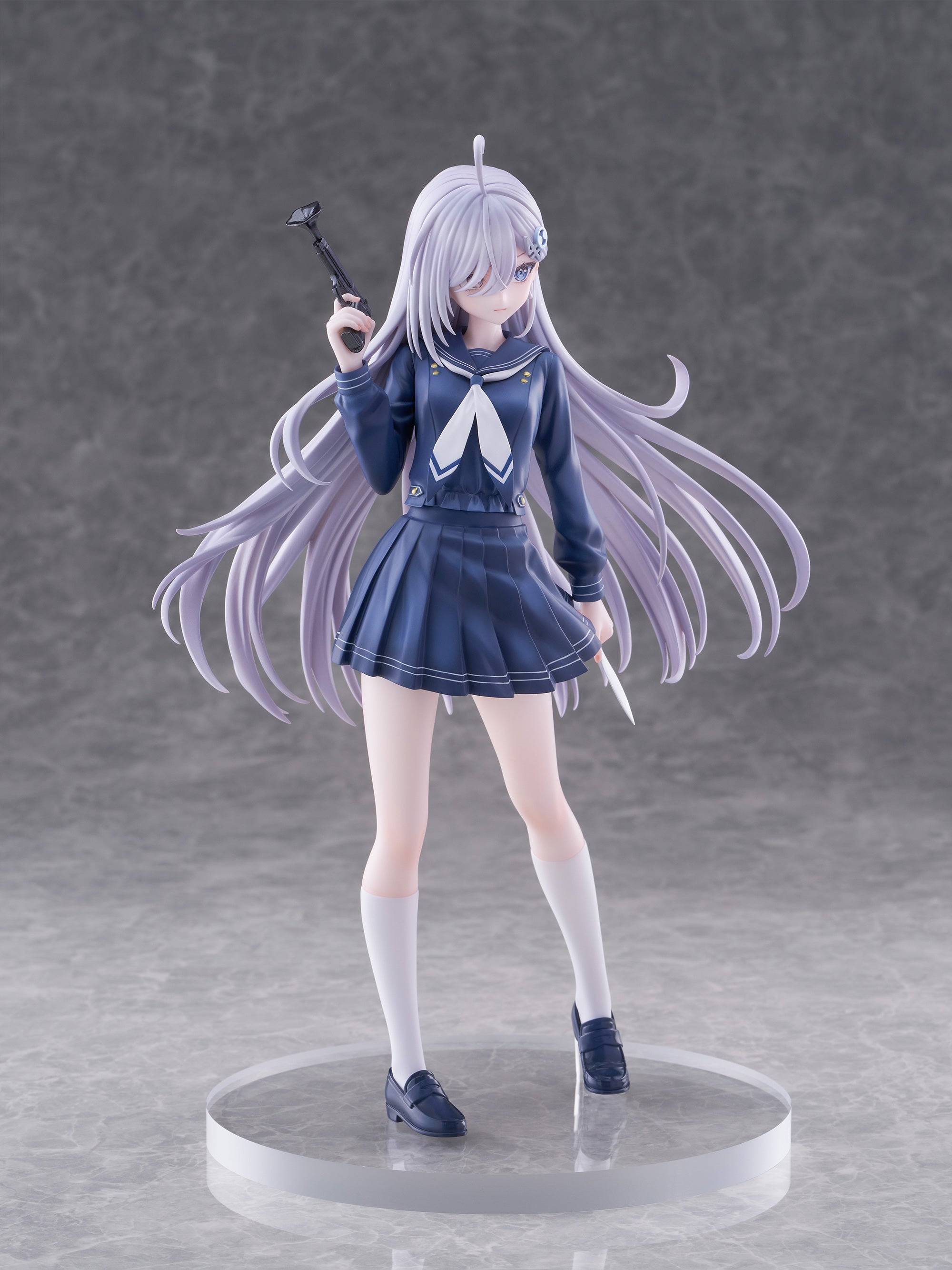 Yuki in school uniform with toy pistol.