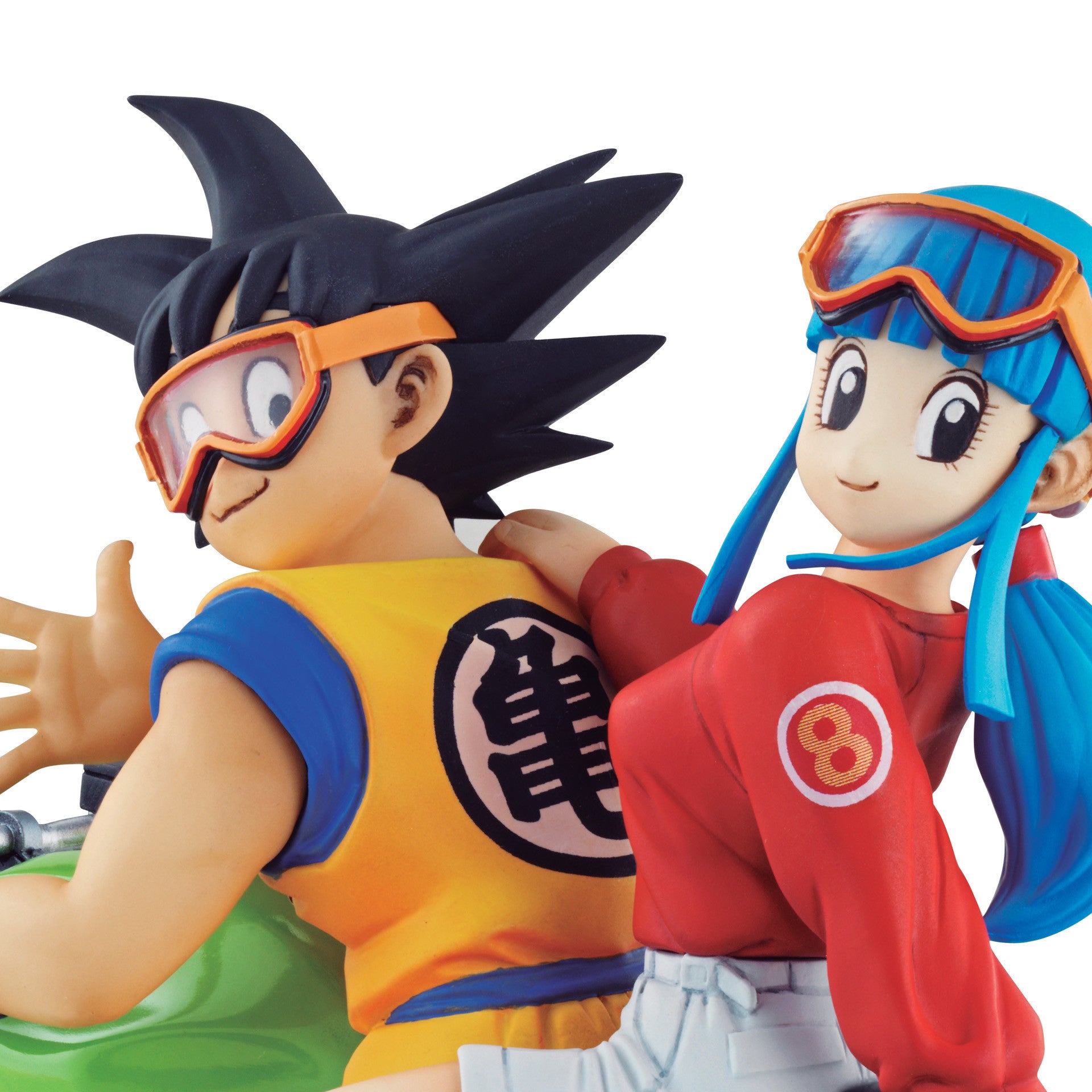 Young Goku and Chi-Chi riding on a bike.