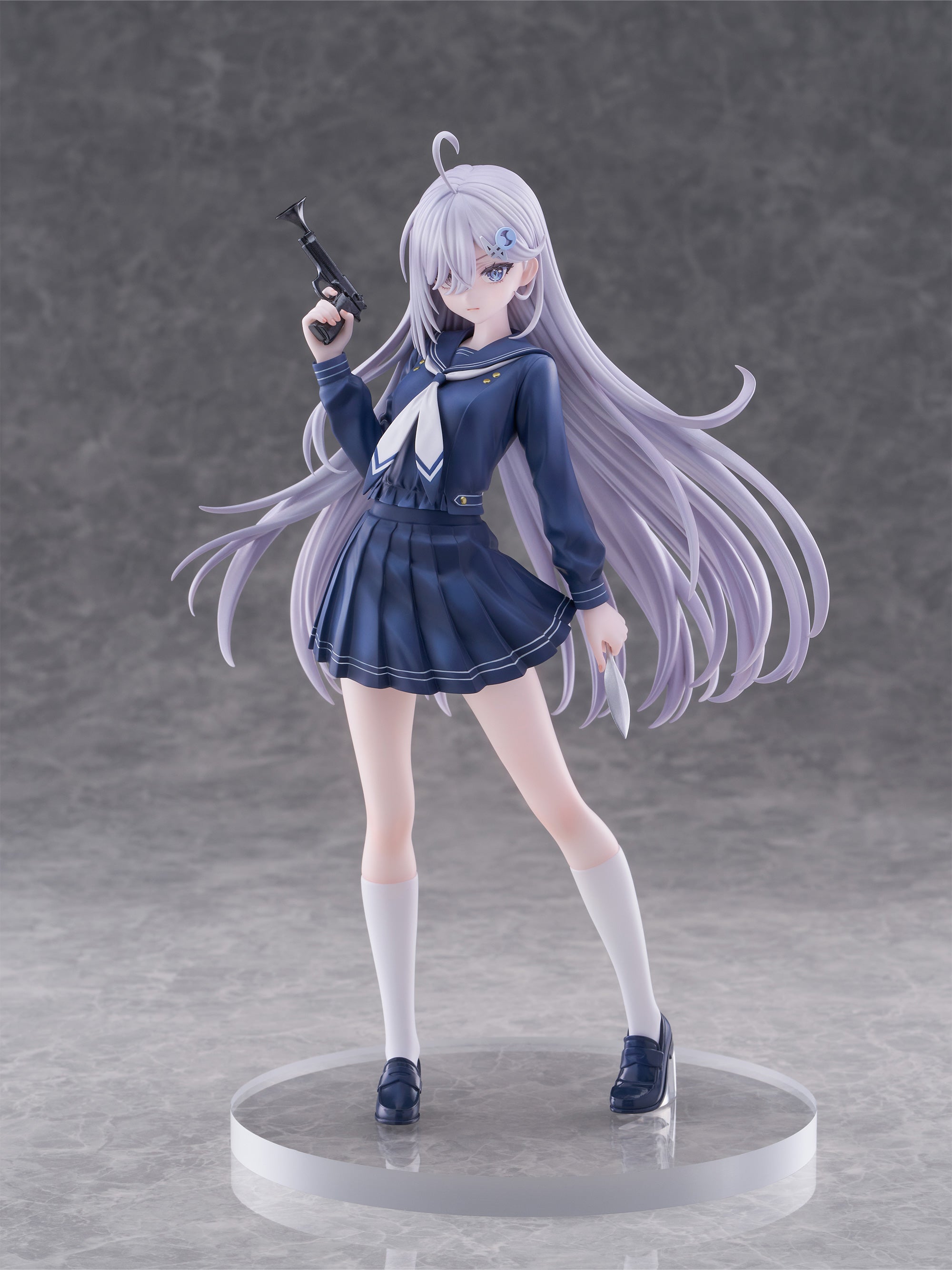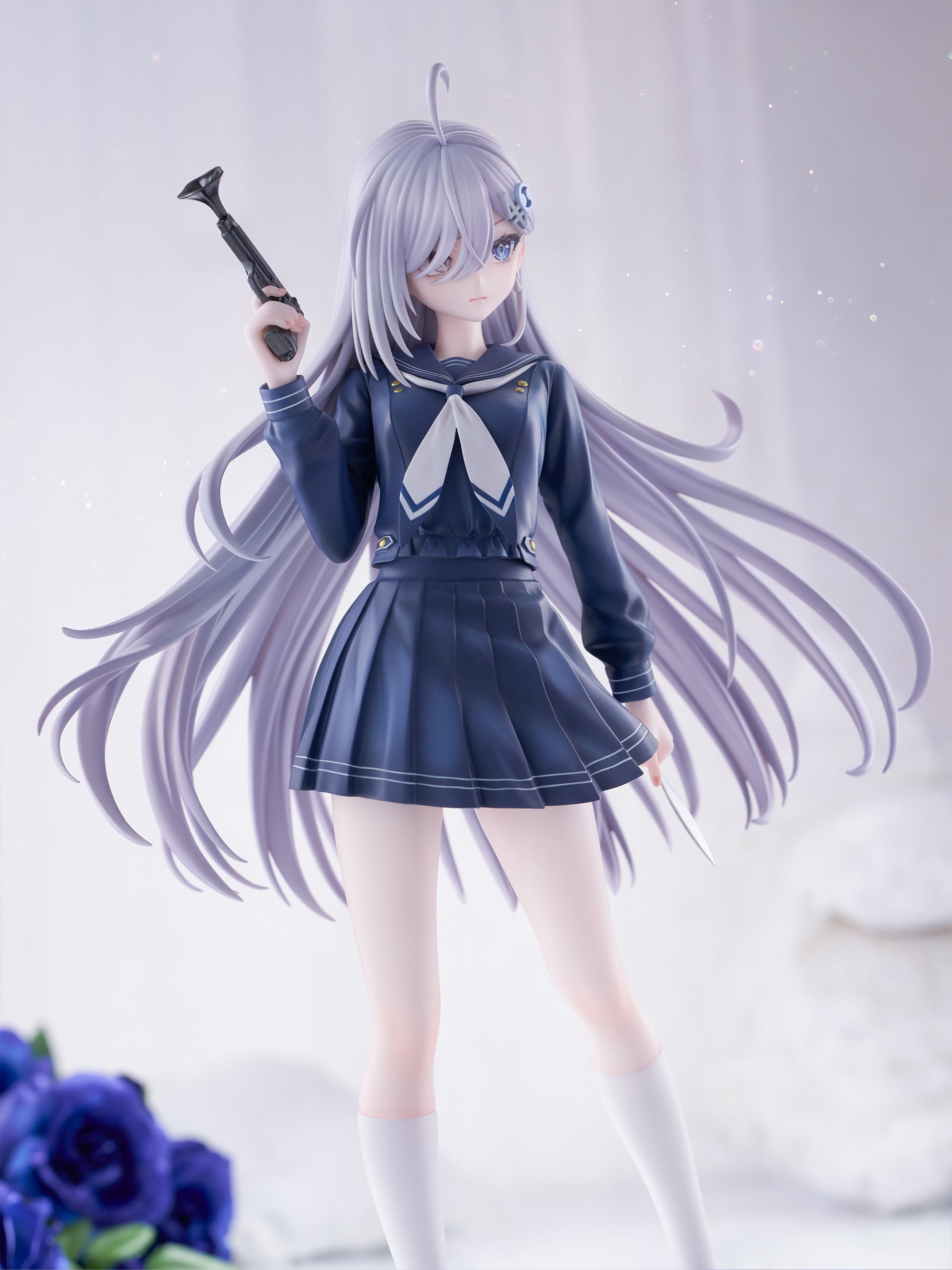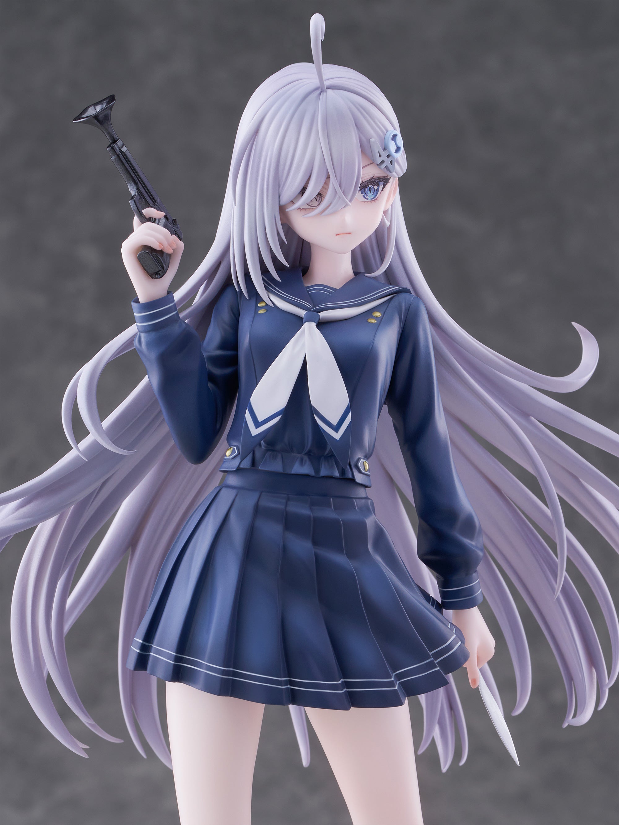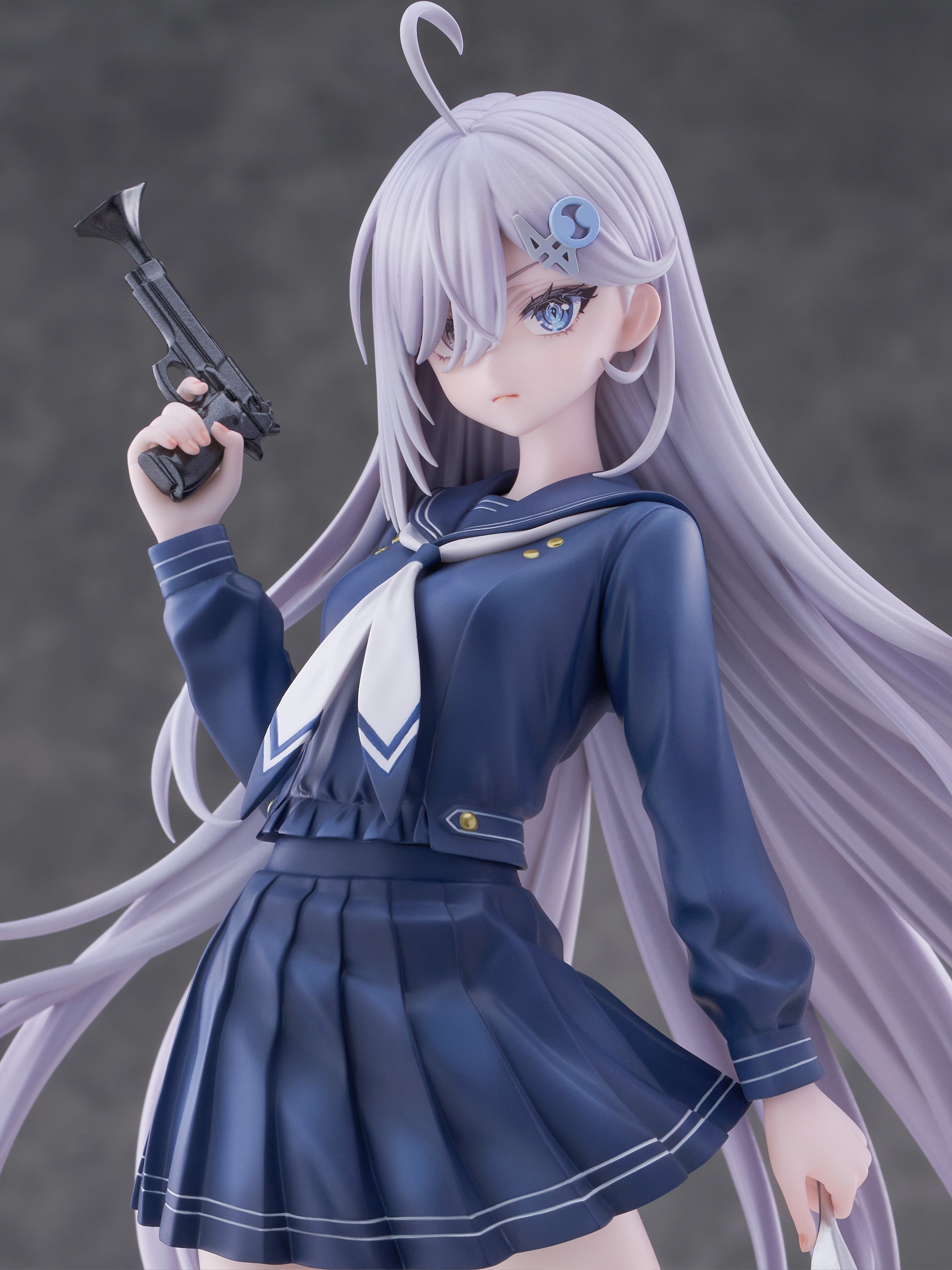 Yuki in school uniform with toy pistol.